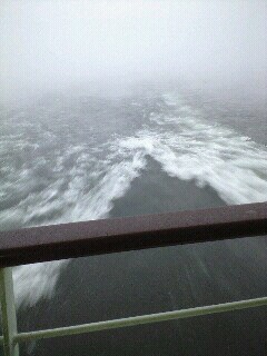 船に乗ってるあいだ、ずっとこの調子で霧が視界を阻みます。