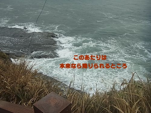 本来なら平べったい岩盤がひろがる稚児ヶ淵ですが、高波がザッパ~ン ドッパ~ンと押し寄せてきます。