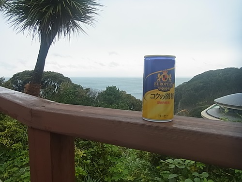 頂上の植物園まえの広場で缶コーヒー飲みます。
